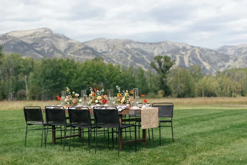 At Snake River Ranch, where the natural beauty of Wyoming speaks for itself, the design vision called for something quietly stunning. For this styled shoot, ROAM Rental Co. leaned into elevated rustic charm—delivering a look that honored the landscape without overpowering it.