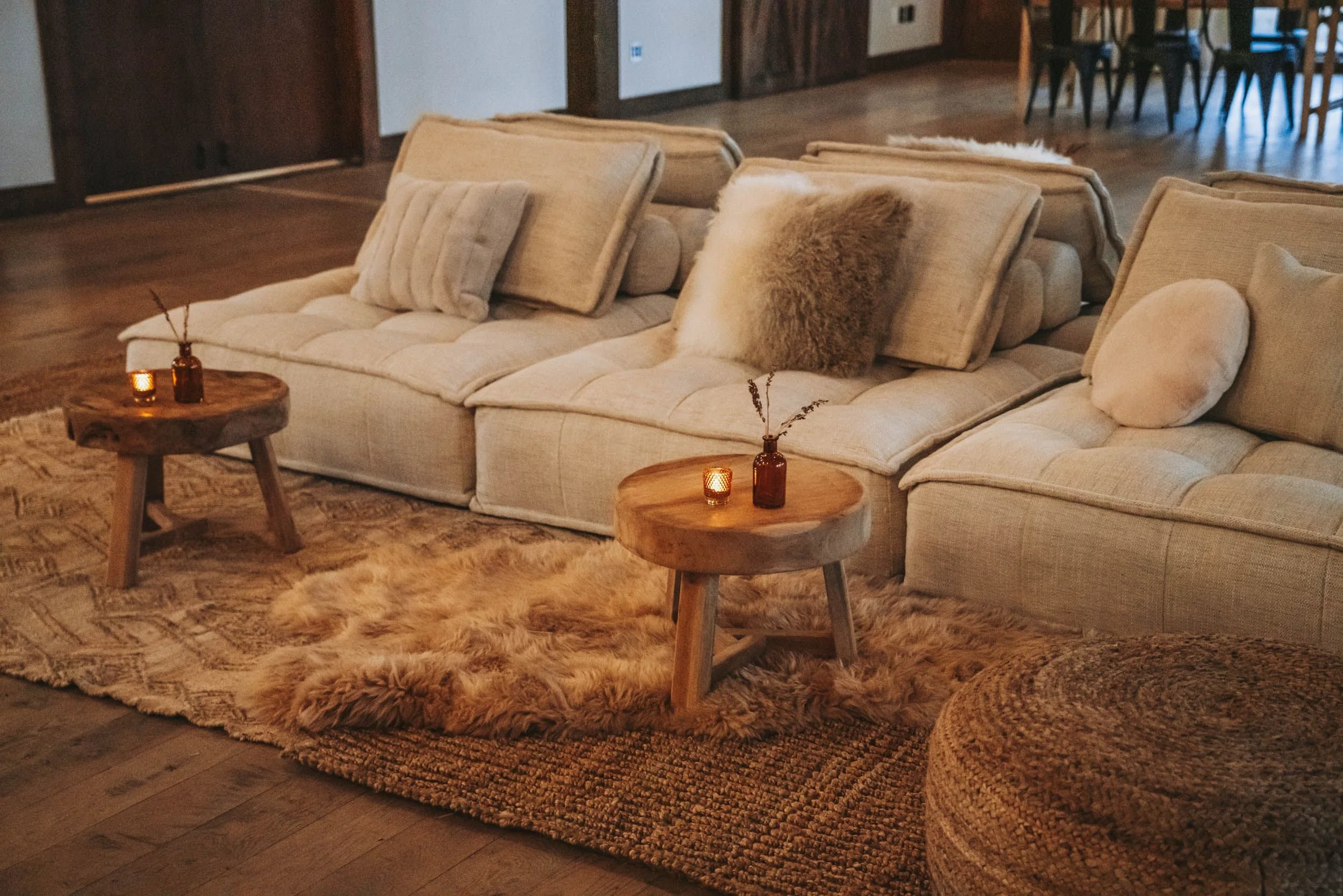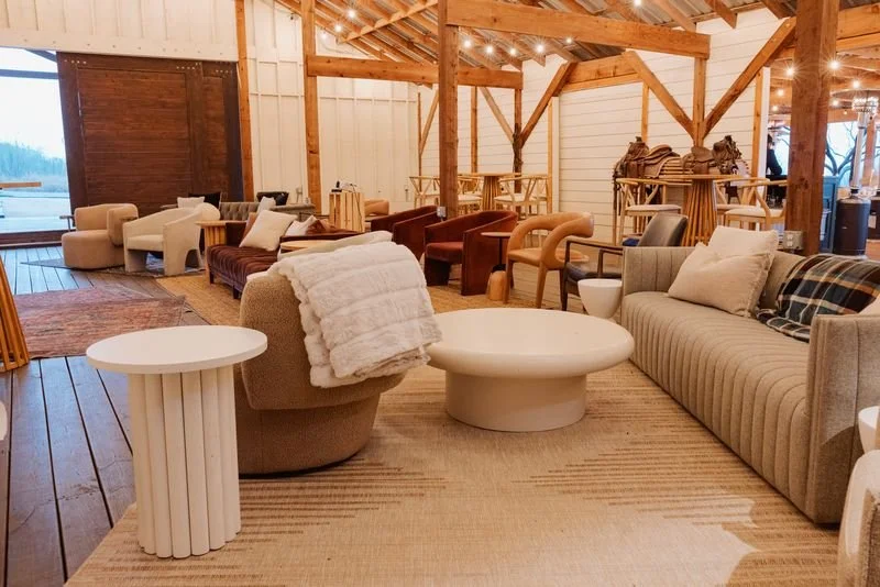 Whether it’s boucle for a winter wedding, linen-soft neutrals for a rooftop dinner, or rugged leather for a Jackson Hole brand event—our rentals are always style-first, never stale.