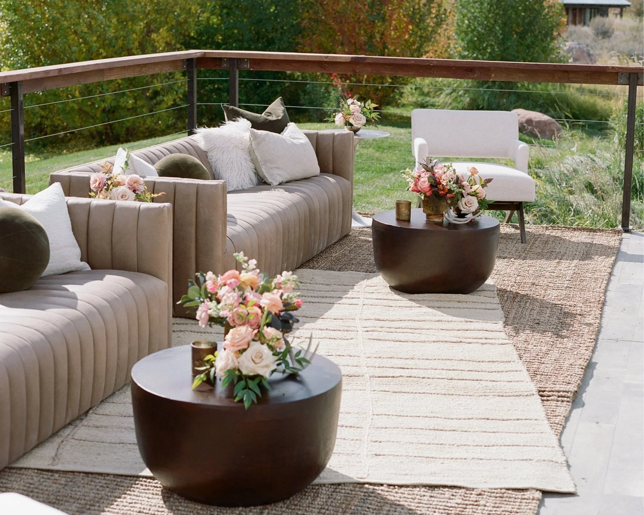 Instead of many little rentals, go for fewer bigger ones. One oversized lounge grouping will always outshine a dozen scattered chairs. One long dining table with thoughtful styling > five half-styled cocktail tables.